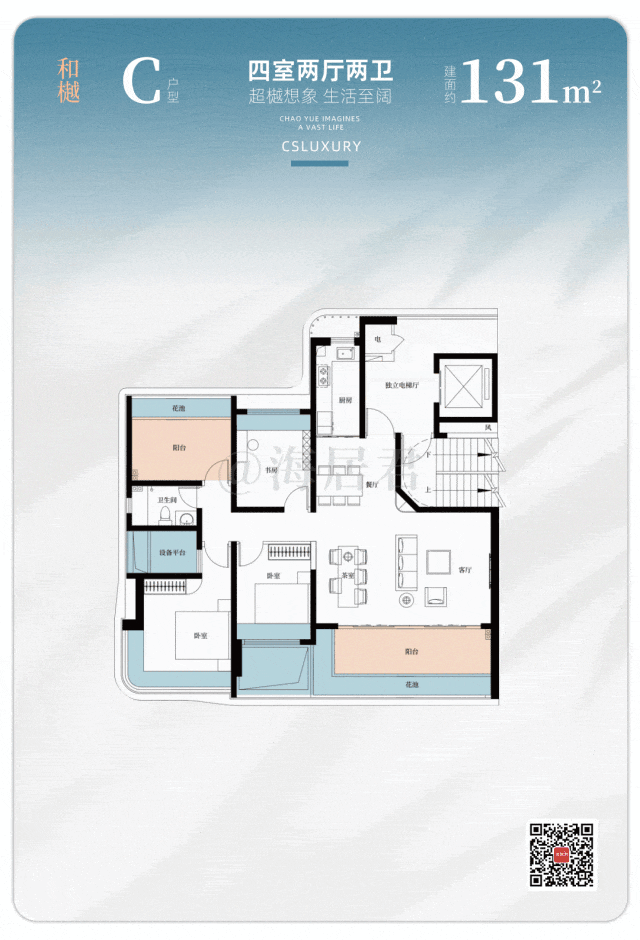 项目共 9 栋楼,全线采用了纯板式结构,确保家家南北通透,一梯一户的私密设计,搭配户户带有花池的专属电梯厅,让每一次推门,都是一场穿越花园的仪式。整个户型涵盖 88-131 ㎡面积段。