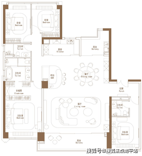 266方四房两厅三卫,8米江景阳台,超80㎡奢阔客厅,打造LDKB餐厨客一体化设计!
