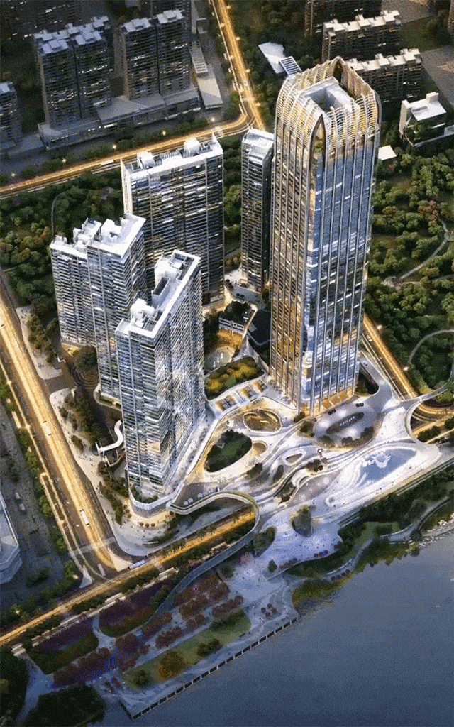 ③“黄金十字”交汇极点:位处地脉与水脉黄金交汇极点,占据核心地段绝版土地,私享极致江岸风光!