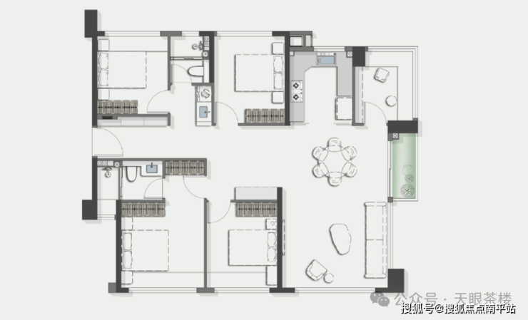 1、四房格局,多功能房可独立做卧室也可拓展为大客厅,轻松应对成长型家庭所需;