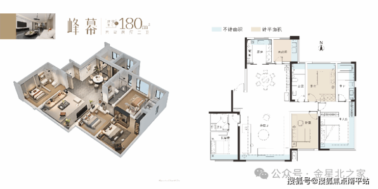 首开建面约160㎡、180㎡主力户型,户型最高得房率超110%,层高达到约3米,实际使用空间比市面上其他户型大了不止一点。
