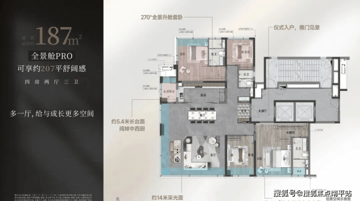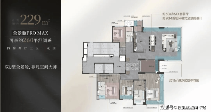 【建面约229㎡全景舱户型图】建面约229㎡可享260㎡空间感