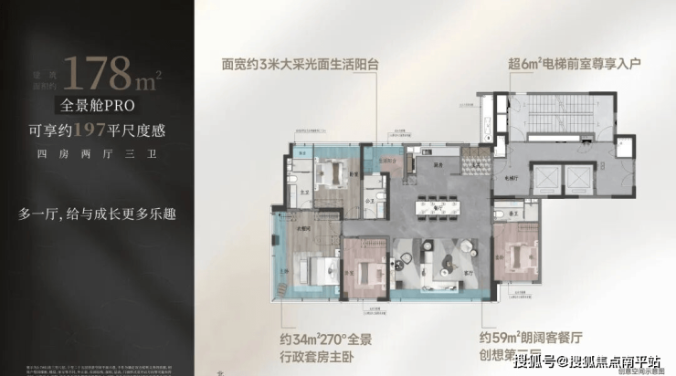 【建面约178㎡南厅户型图】建面约178㎡可享197㎡尺度感