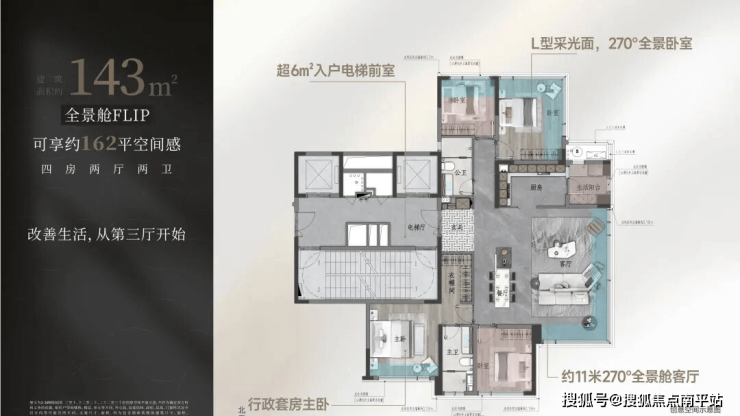 【建面约143㎡端厅户型图】建面约143㎡可享162㎡空间感