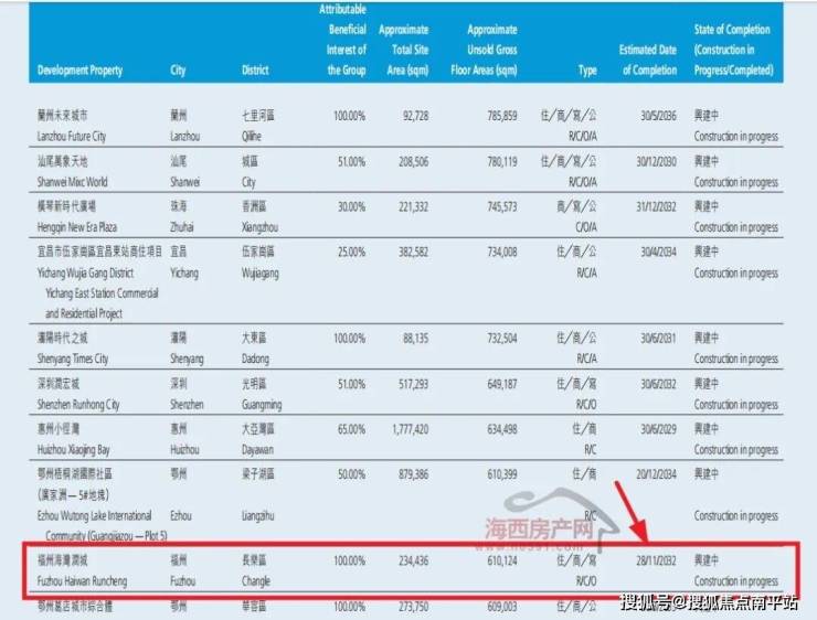 在年报公布的主要物业中,位于福州长乐区的“福州海湾润城”,目前状态为兴建中,总占地约234436平米,可售面积610124平米,业态包括住宅、商业和写字楼。