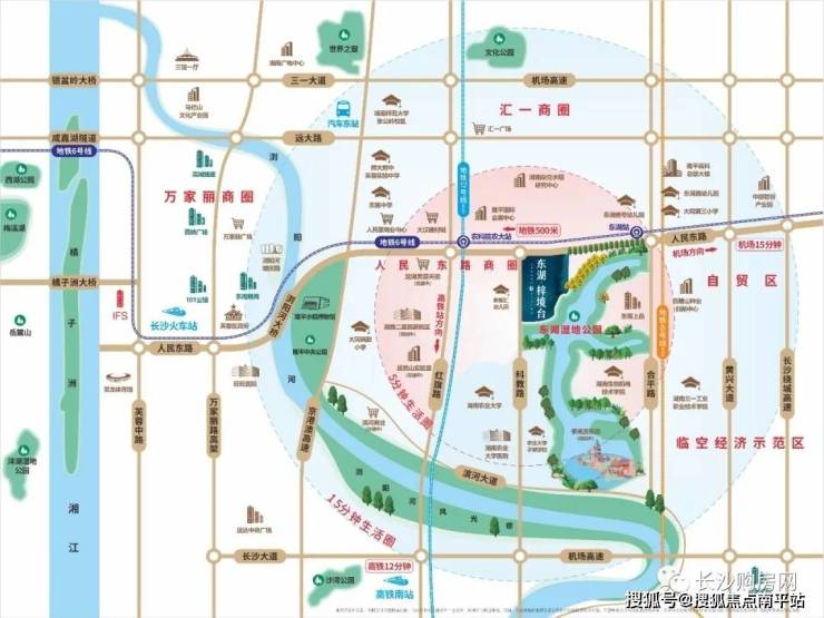 芙蓉区隆平科技园、人民路、6号线地铁口、800亩东湖湿地公园湖区大宅