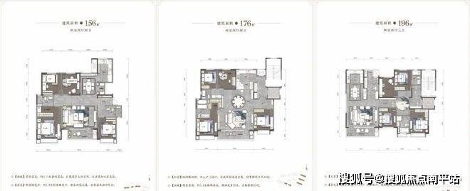 一期洋房分为156-176-196平三个户型,均为四室房源