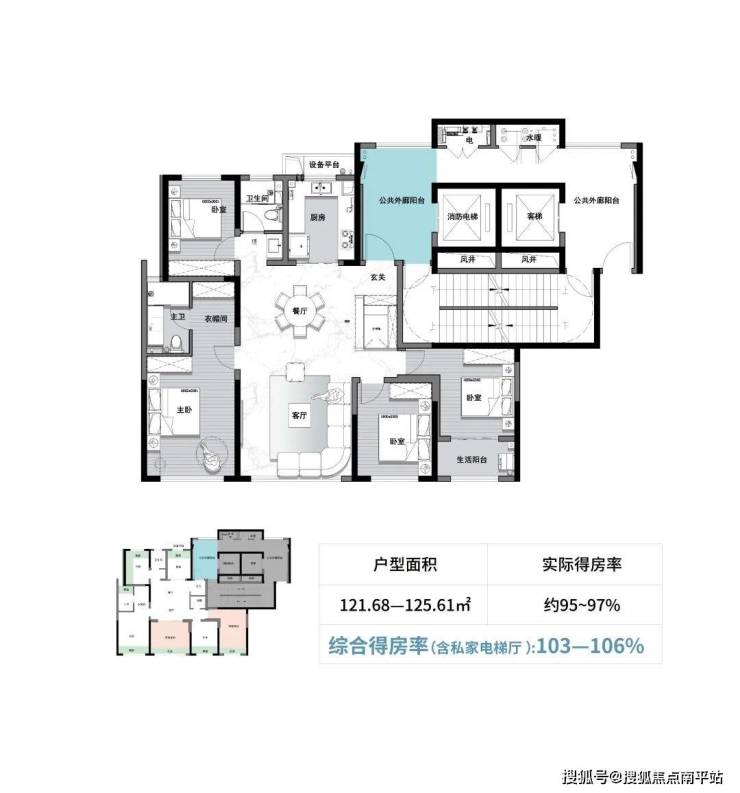 高达约120%综合得房率(含电梯厅)