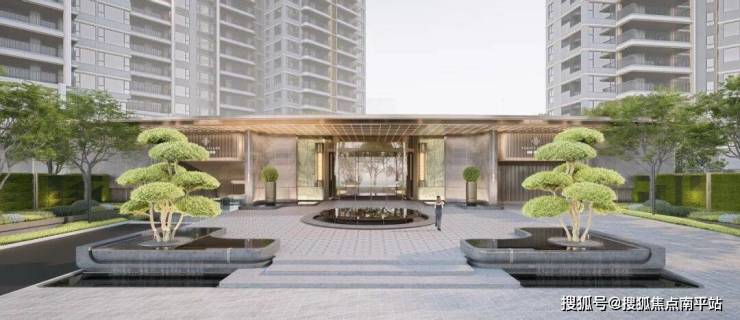 项目打造超54米酒店式门仪,搭配鼎奢酒店同款圆盘水景,主入口甄选绿奢石,两边摆放着价值不菲的全冠日本冬青......