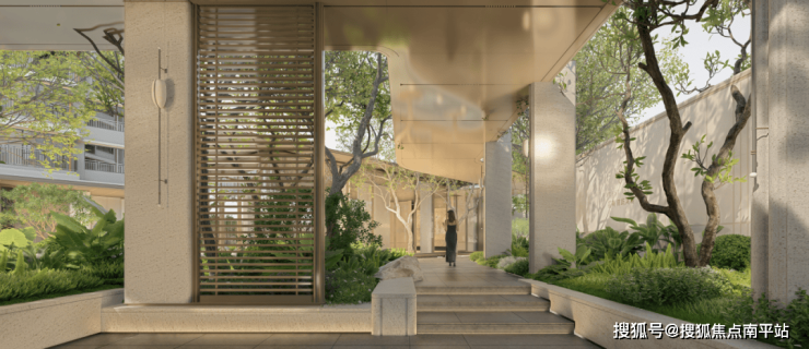因为它紧密连接了水院风景与入户大堂,让你在归家途中,移步易景,无论晴天还是雨天,都有不同意境的风景线陪伴左右。