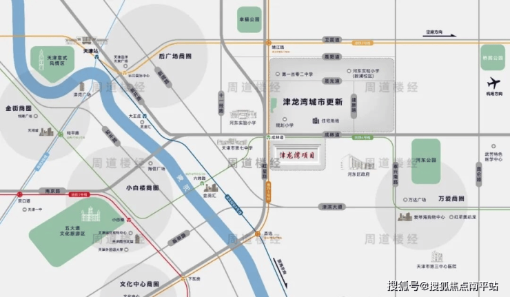 七、双地铁(4/5号线)换乘站作为核心枢纽,构建起高效通达网络:无需换乘即可直抵河西、和平7大商圈,从河东万爱商场到和平路恒隆广场,从河西万象城到金街印象城,繁华商业触手可及。