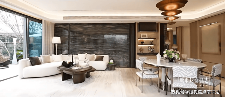 这座600㎡下沉庭院,是静谧流淌的绿意。这里雾森缭绕,栈桥贴水而行,半山会客厅香槟金顶与石墙构成立体画境,将一城山色半城湖的意境完美呈现。