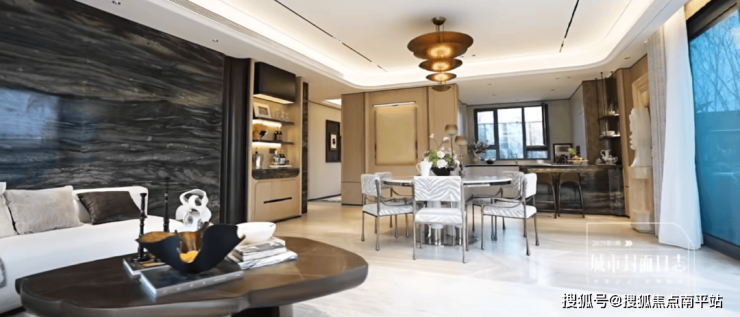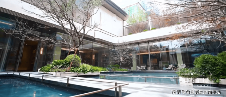 这条时空艺术长廊,是光影交织的林境,21米香槟金格栅长廊以2:1黄金尺度勾勒光影,巧妙框取下沉庭院的雾森景致,乌桕木与蓝翡翠岩水潭倒映天光,让归家成为诗意旅程。