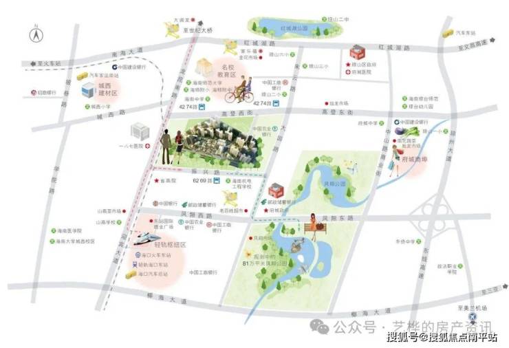 教育圣地:项目正对面即是海南最知名学府:海南中学,周边还环绕海师附小,琼山二小,海师附中,海南师范大学等知名学府,16 年一贯制全龄教育近在家门口