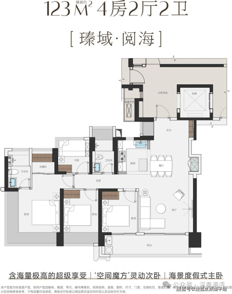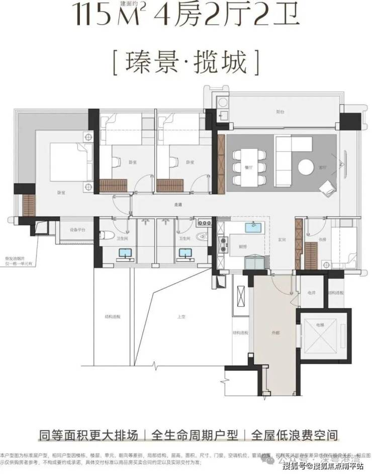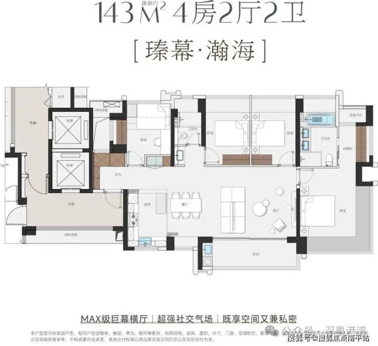 项目主打115-143㎡纯四房,采用4梯5户及专梯入户设计,空间利用率极高。