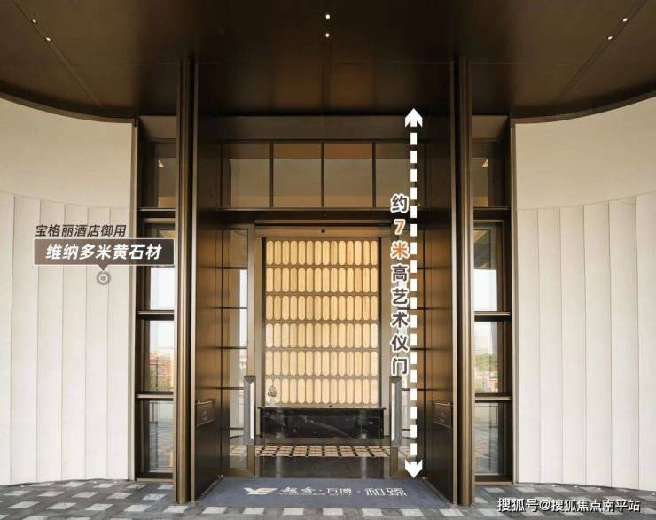一进大门,整个入户大堂以宝格丽酒店设计风格为灵感, 每一个细节都透出映射质感。 约7米高的艺术移门辅以奢石弧形墙面 ,以强烈的仪式感,勾勒通往越秀·万博和臻的“玄关”。