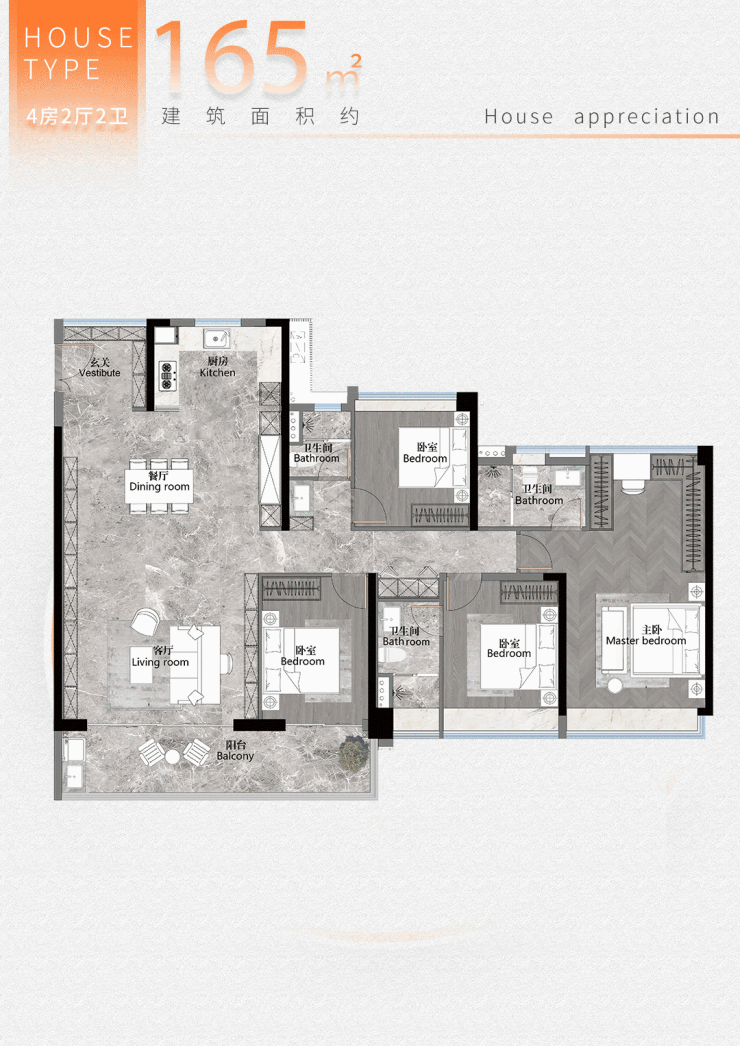 全屋空间均好性, 每一个卧室都有充盈尺度。