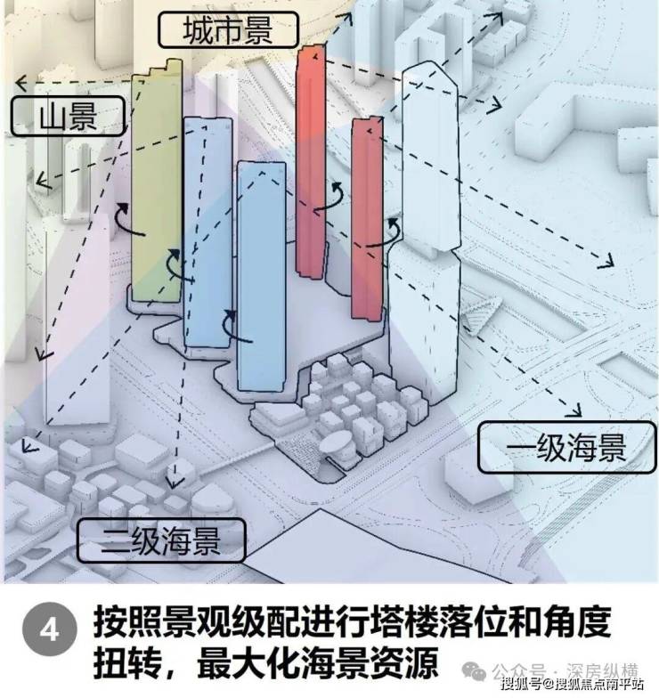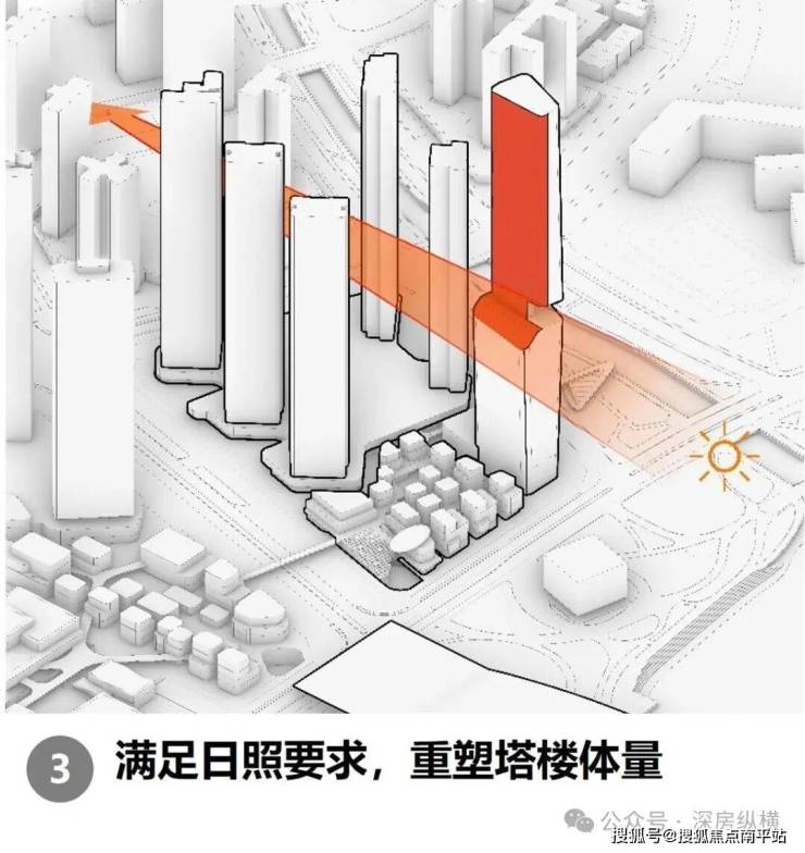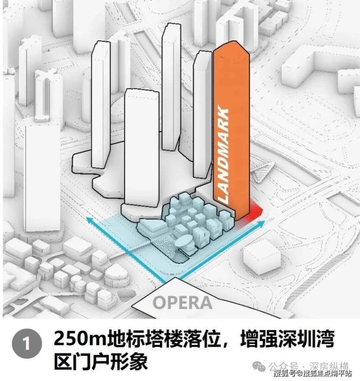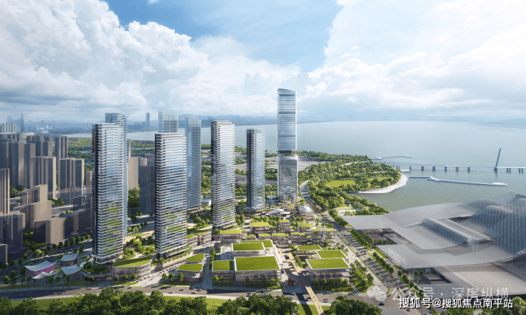其二,地标重塑与天际线构建。规划以 250 米超塔引领东角头片区的新地标群,并与深圳湾一号、华润春笋等超塔建筑相呼应,共同塑造深港对望的门户意象,强化深圳海岸线的识别度。