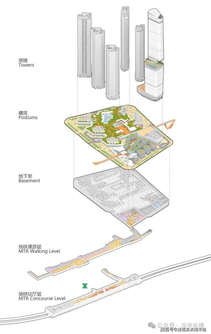 其三,构建高效互联的立体交通网络。项目通过与深圳地铁集团协调优化布局,设置下沉广场实现地铁站与商业街区的无缝衔接;同时整合首层、二层与地下步行系统,打造 “出地铁即到家” 的高效体验,既提升居民生活便利性,也为物业价值赋能;更通过漫游层直联歌剧院艺术街区,实现全域场景动线互通。