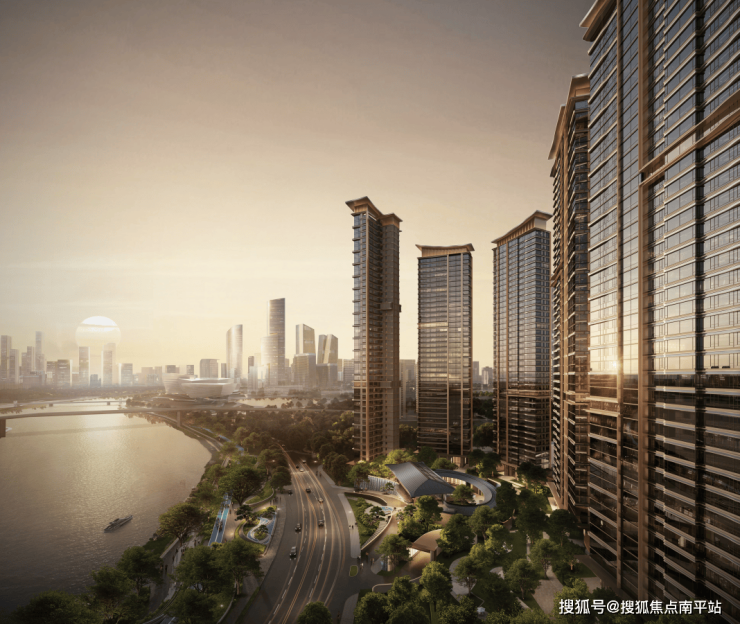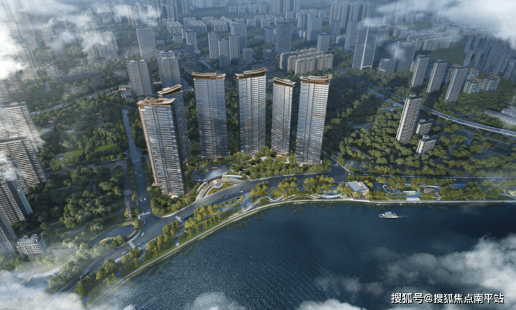 其一:项目南向一线望江,采用 半围合式的建筑布局形态,七栋塔楼序列排开,用尽稀缺江景,随江赋形,户户阅江。