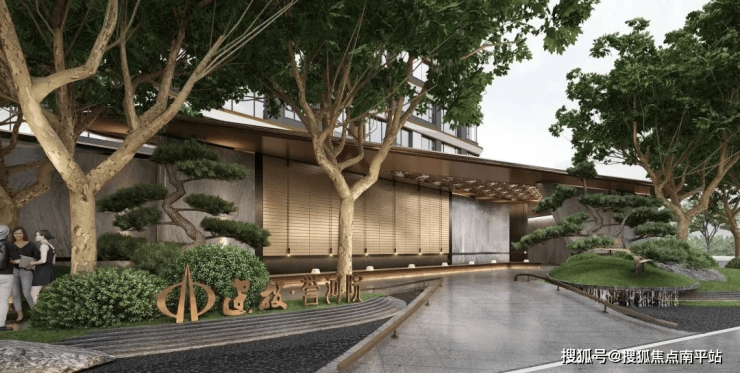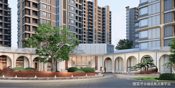百年古树伫立门前,以金属线条勾勒鎏金门庭,大堂前庭以古树为核心,寓意凤栖梧桐,手工石材铺装地面,打造科技与自然共生的优雅格调,让归家的每一步皆成人文风景。