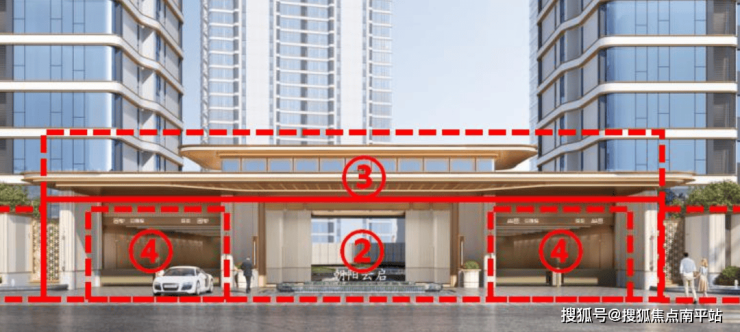 2首层外墙外凸柱式及格栅取消,改为石材外包,材质由银灰色铝板调整为香槟色铝合金+米黄色石材;