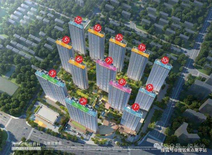 产品:三房、四房、五房,面积116㎡-169㎡,全新规超高得房率产品。公建化立面+局部铝板线条,配建超大会所。