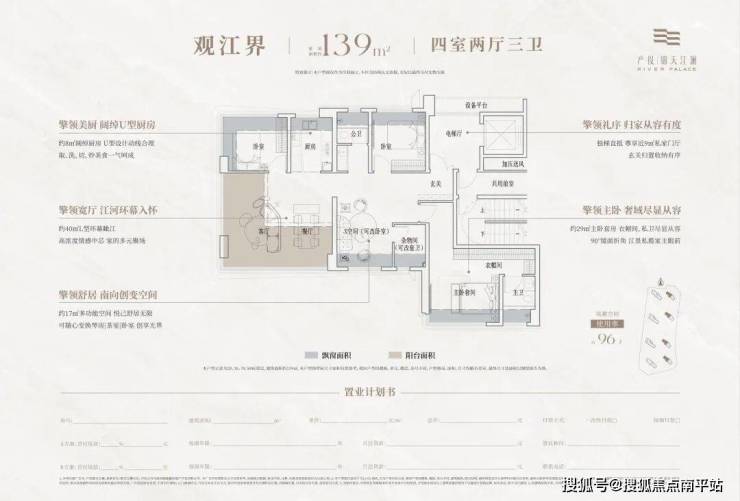 建面约121㎡、139㎡、182㎡、186㎡揽江四房,迭代观景界面,重塑江居想象,适配不同需求家庭质感生活所需。