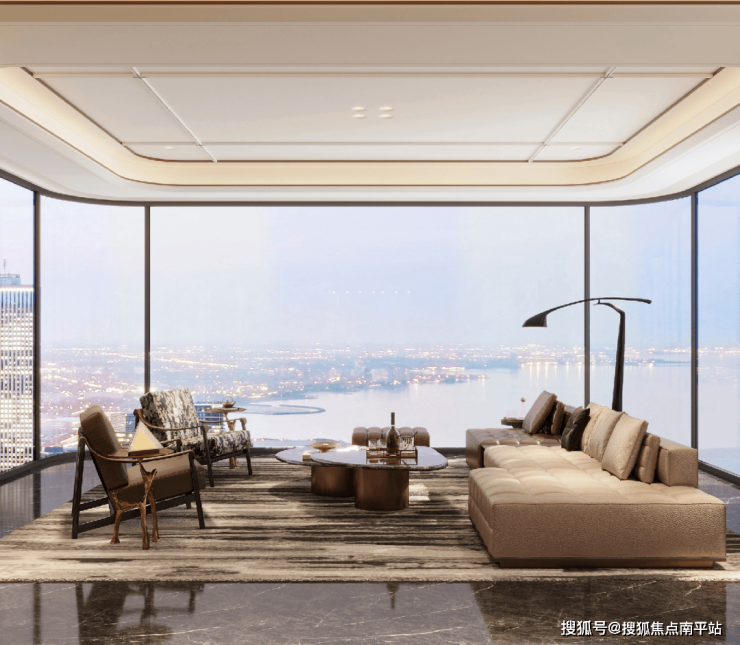产投 ·锦天江澜以迭代目光,打造开创式双 U 全景舱产品,引领 270 °环幕观江视野,客厅与主卧直面江景,将江景融入日常居住场景。