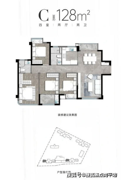128㎡边套4房整体户型比臻樾的121㎡差一点,朝南的晾晒阳台放在次卧里使用不方便,看定价吧,目前属于比较尴尬的位置;