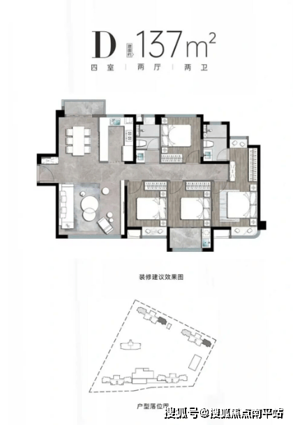 117㎡的四房中间套和137㎡的四房边套,对应湖畔九境的115㎡和135㎡,整体大了2㎡,未来如果湖畔九境卖得差不多了, 这两个户型可以充当补货的角色,否则这两个户型的定价就要比九境低,不然pk不过。