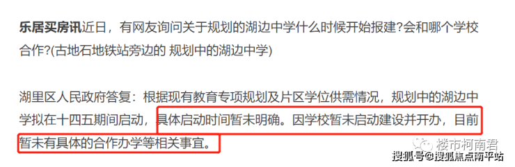 3、学区:这个是湖边水库目前的短板,之前其他项目的测评也说过了就不赘述,龙湫亭实验学校,属于岛内比较差的学区,而地块旁边的 湖边中学官方也给了回复“暂未启动建设并开办,目前暂未有具体的合作办学等相关事宜”。 之前盛传发发和华华要去搞个合作学校,哪知最近发发和华华的大领导纷纷出事,学校这一事就变得很敏感,没人敢去搞了,所以短期的学区利好是不会有了,中长期就不知道了。