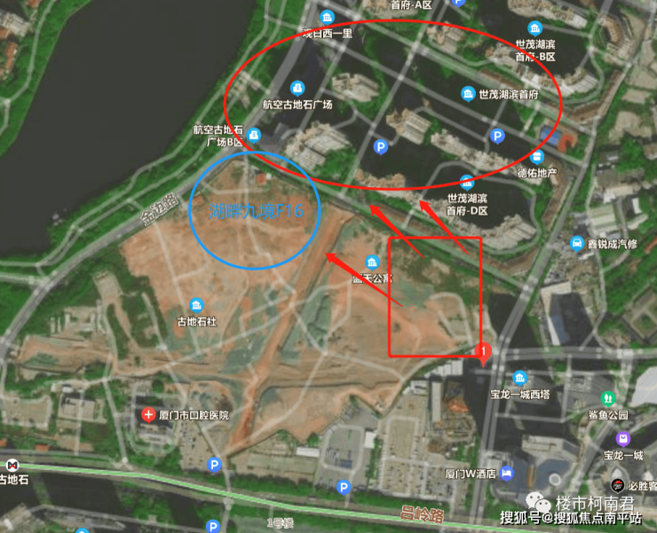 地块西北侧的湖景被湖滨首府的C区、D区,以及湖畔九境最北侧F16地块挡住了,按照目前这个角度,就算能看到湖,也只能称之为“一线湖“, 真的是一条线而已。那问题来了,大户型,无景观,意味着没办法拉高溢价,未来这个户型的定价无法给小户型做护城河,难道是为了去抢湿地公园tod同样无景观的198㎡?
