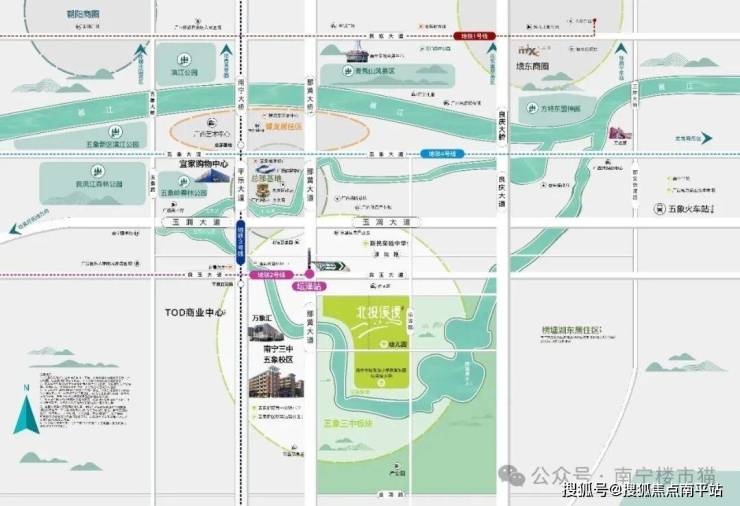 北投溪境位于那黄大道的边上,周边一公里的范围内可达南宁三中五象校区、地铁2号线坛泽站,旁边还有楞塘水系蜿蜒而下。