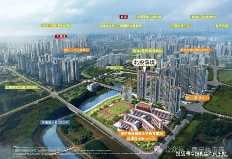 北投溪境能成为五象新区的“网红盘”之一,最主要就是该盘所处的地段,是南宁三中五象校区学区范围。北投溪境还配建桂雅路小学分校,该校已经建成即将交付,预计明年就有该楼盘的业主就能享受到顶配的小学和初中学区。