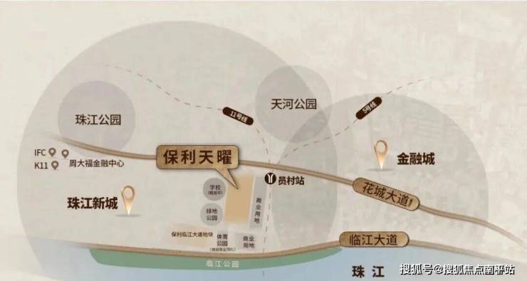 地铁: 楼盘东北侧就是广州地铁 5 号线与 11 号线交汇的员村站,仅约 100 米距离。
