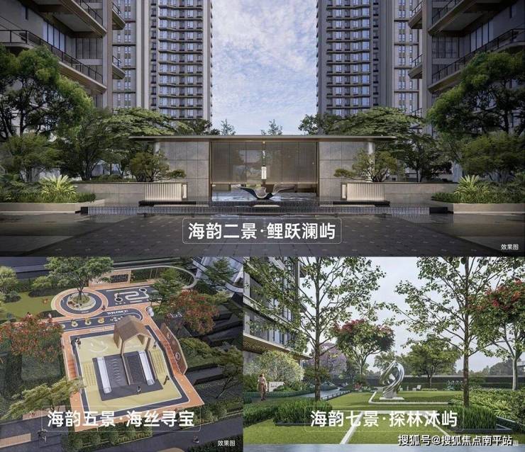 社区外部配置超万平社区级“入户公园”,社区内规划“一轴一带一环・海韵十景”的森林式都会假日景观体系。