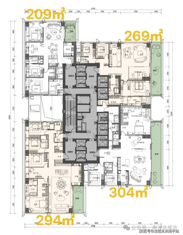 ——低区 5F起(150米以内)是约209-304㎡四房大户型;