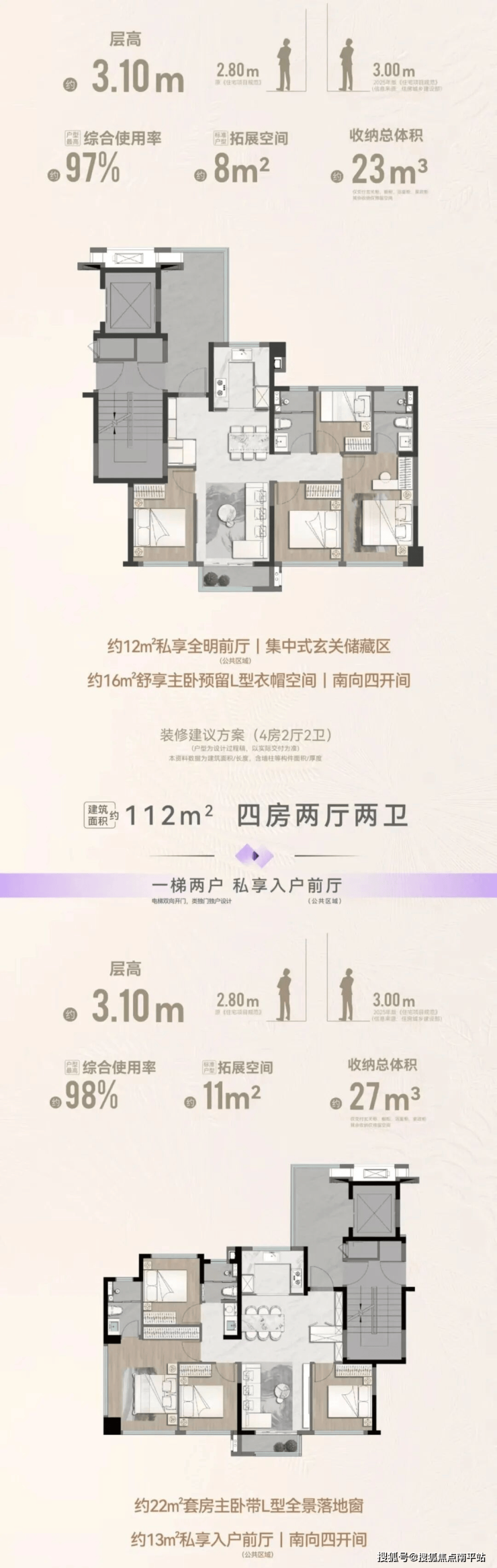 项目规划4栋瞰海高层(部分)2梯5户,64㎡2房、75㎡3房、79㎡3房、89㎡4房,(得房率85%—90%)层高3米;5栋低密洋房,95㎡和112㎡4房,得房率97%—98%)层高3.1米,类独梯独户设计,户户都有一个12-13㎡的入户电梯厅。高层和洋房全系均有外阳台。售楼处:☎️☎️售楼处电话400-159-8559转6666【已认证】