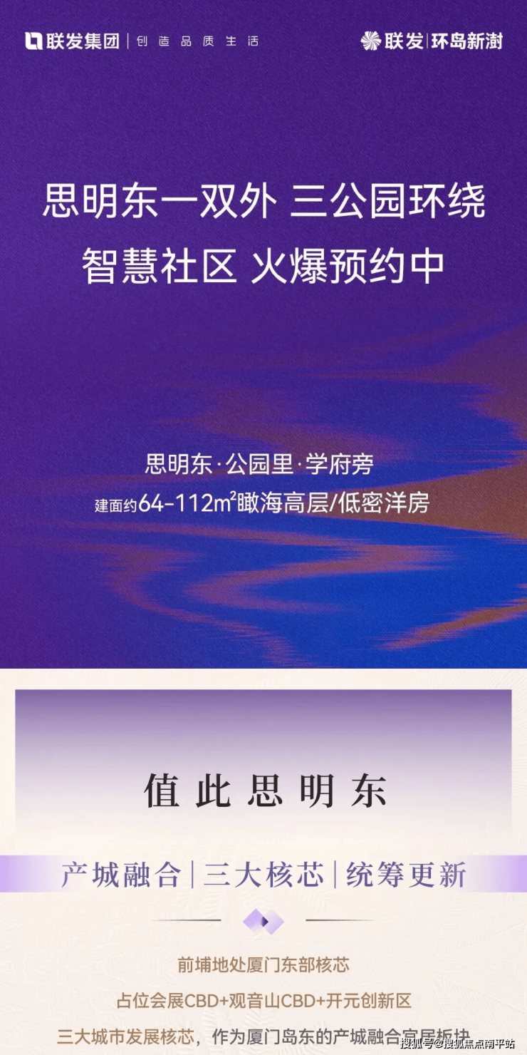 ☎️厦门思明东一双外【联发·环岛新澍】 售楼处24小时电话:400-159-8559转接6666【☎️☎️已认证】