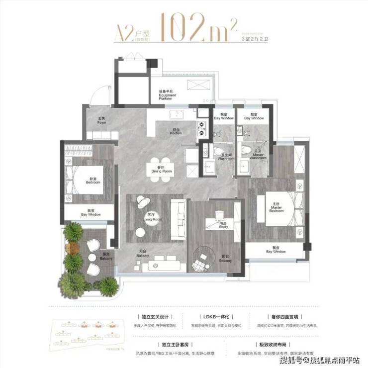 先看建面约102㎡三房两厅两卫的高层起步户型,它也是当前江核待售纯新盘中的最小面积产品。2字头的预期价格,意味着总价门槛十分友好。