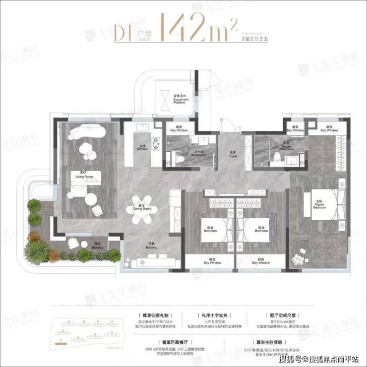 最后是建面约142㎡的墅厅奢享级户型,整盘只有一栋楼,仅12套,放在江核更是稀缺中的稀缺!错过再无!