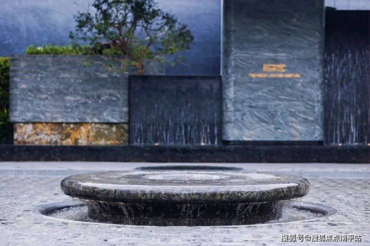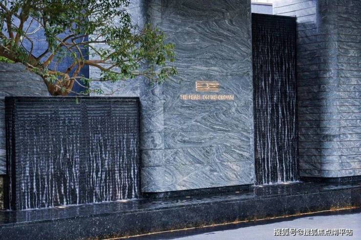 主入口对景墙面通过库班绿奢奠定庄重基调;叠水景观运用库班绿奢石与香格里拉奢石巧妙拼接,光影流转间尽显灵动;地面铺装采用大量库班绿奢石进行拼花处理,奢华触感步步相随。