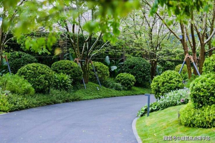 植物选材上,精心挑选铁冬青、朴树等名贵乔木,构筑立体而富有层次的林冠天际线;搭配灰莉球、米兰球、花叶女贞球、龟甲冬青等球类植物,以及鼠尾草、雪花木、迷迭香、狐尾天门冬、肾蕨等特色灌木与地被,营造出高低错落、疏密有致的景观层次。四季时花点缀其间,形成一体化精致花境,尽显自然诗意与盎然生机。