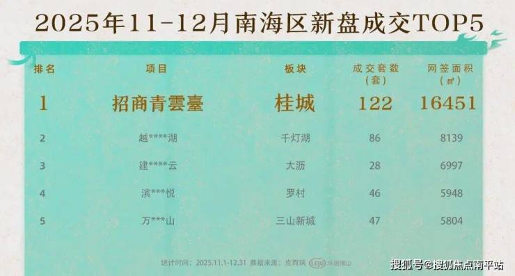 2025年末的佛山楼市,南海桂城招商青雲臺以黑马姿态走出了独立行情。项目11月 首开劲销4.16亿 ,一举夺得南海区商品住宅销售金额、面积、套数三榜TOP1。12月载誉上新实现“二开二捷”,成为 年度佛山楼市的现象级红盘 。