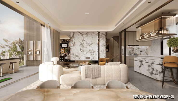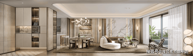 洋房户型硬装设计以侨乡风情、温馨现代为特色,融合多元文化采用明亮柔和色调,营造居住者内心深邃洋房记忆。赠送岩板电视背景墙及皮革玄关柜柜体;叠拼户型硬装设计以海派东方与滨海南洋风为设计主题,地面900×1800密缝大板砖设计;赠送石材客厅背景墙、石材岛台、岩板厨柜台面木饰面及全屋壁布。
