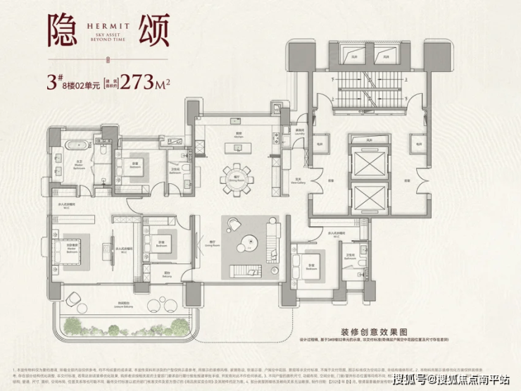 天樾云颂一期的第四代户型的要点是“豪”到极致。以273㎡大平层为例!