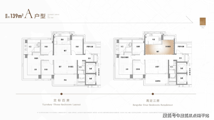 139㎡户型支持定制三房方案,动区更奢阔