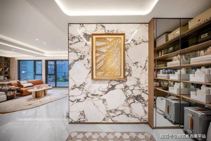 类独立电梯明厅+双入户门仪规制,是这套房子的“面子”,也是最值得细品的“里子”。这种配置,通常在200㎡以上大平层才能看到。