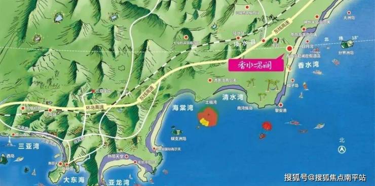 • 交通:距离三亚凤凰机场仅85公里,车程一个小时,乘坐环岛高铁仅二十分钟可以达到三亚站,同时项目距离陵水高铁站仅10分钟车程,距离海口市区约182公里,车程约90分钟